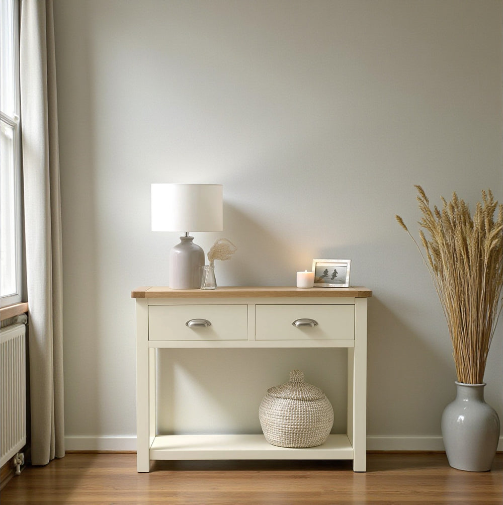 Aprovecha al máximo tu pasillo o entrada con este Arrimo (Mesa de Arrimo) compacto de 2 Cajones. Una pieza práctica y encantadora que ofrece almacenamiento extra sin ocupar mucho espacio, 100% personalizable a tu gusto.