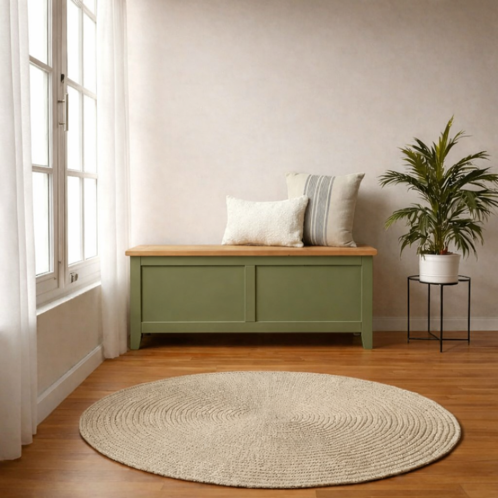 Fabricado íntegramente en Chile, este baúl de madera de pino destaca por su robustez y atención al detalle. La estructura está tratada con pintura duco para un acabado ecológico y suave al tacto, mientras que la tapa superior cuenta con una protección reforzada de sellador y laca. Con 130 cm de largo, es la solución ideal para guardar mantas, cojines o ropa de temporada, manteniendo tu habitación en perfecta armonía.