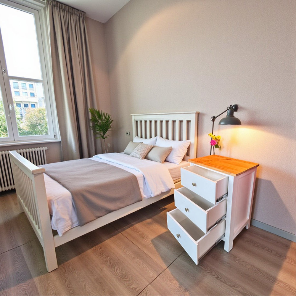 ¿Buscas un equilibrio entre orden, diseño escandinavo y durabilidad para tu dormitorio? El Velador Rose es la solución ideal. Su estructura en madera de pino y terciado, junto a sus líneas limpias, crea un mueble funcional que te ayudará a mantener todo al alcance sin sacrificar estilo. Es la pieza perfecta para complementar cualquier ambiente, aportando calidez y una estética atemporal.