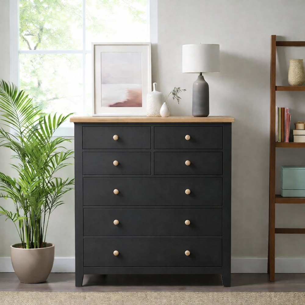 Maximiza el almacenamiento en tu dormitorio sin comprometer el espacio. La Cómoda Giorgia Premium es la pieza maestra para quienes buscan una organización inteligente con una estética que equilibra lo rústico y lo sofisticado.