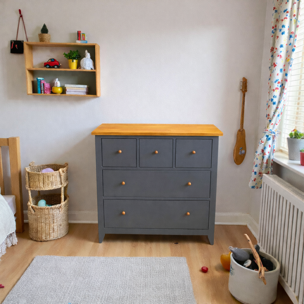 Crea el refugio perfecto para el crecimiento de tus hijos. La Cómoda Chester Kids no es solo un mueble de almacenamiento, es una pieza diseñada para resistir la energía de los más pequeños mientras aporta una estética cálida y organizada a su dormitorio.