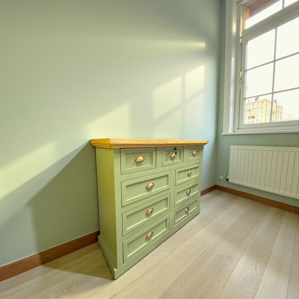 Somos una fábrica artesanal con pedidos limitados 🔎, lo que nos permite cuidar cada detalle y asegurar la máxima calidad en cada mueble. Esta cómoda, con su estructura y cubierta de pino, y cajones en terciado mueblista, es una inversión en durabilidad y confianza. Además, puedes personalizarla ✨ por completo: elige el color y el tono de la cubierta para que combine a la perfección con tu espacio, creando un mueble que es solo tuyo.