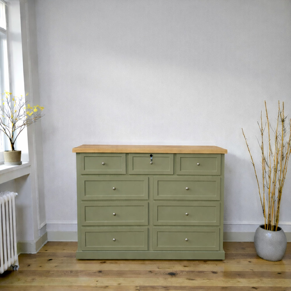 Organización impecable y privacidad en una sola pieza de diseño. Nuestra Cómoda Rústica es la elección perfecta para quienes buscan la calidez de la madera natural con un extra de seguridad para sus pertenencias más valiosas.