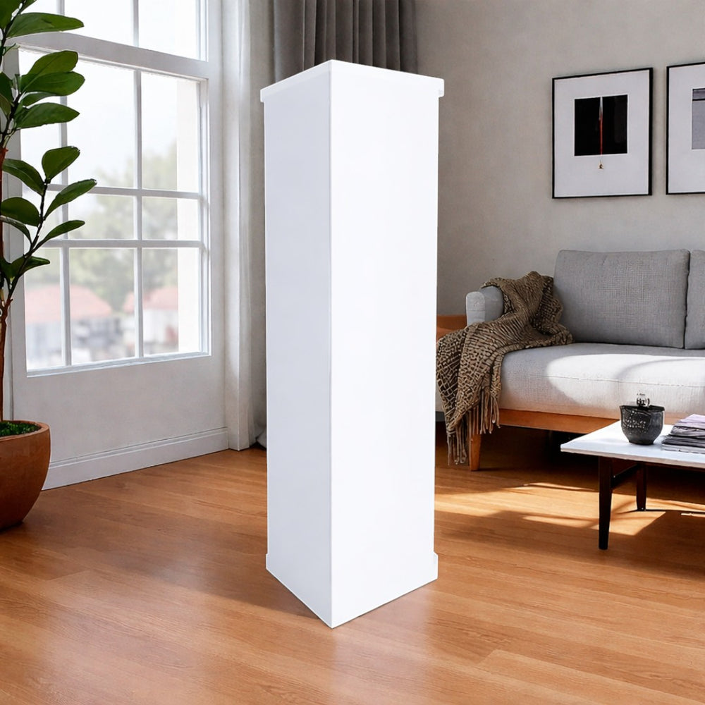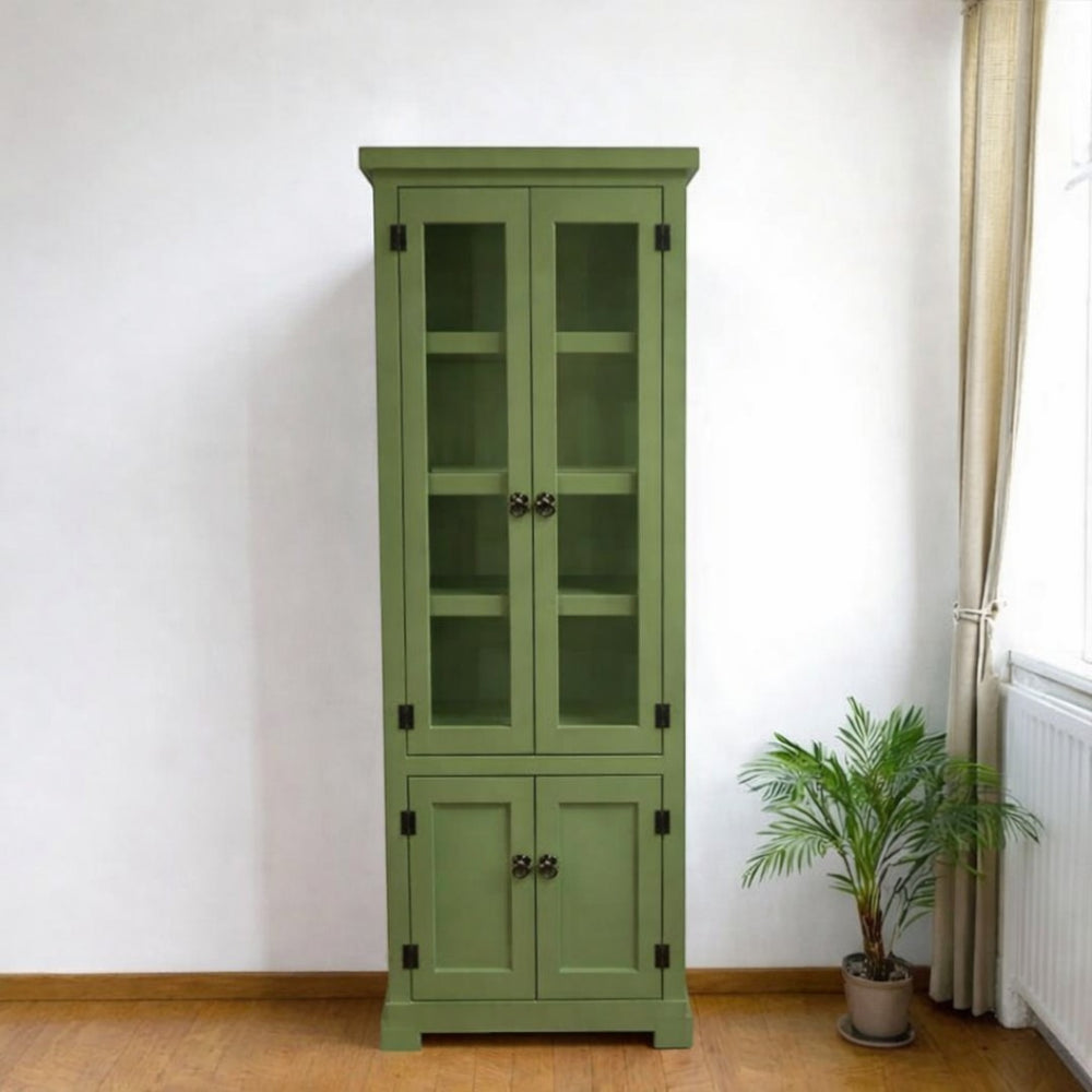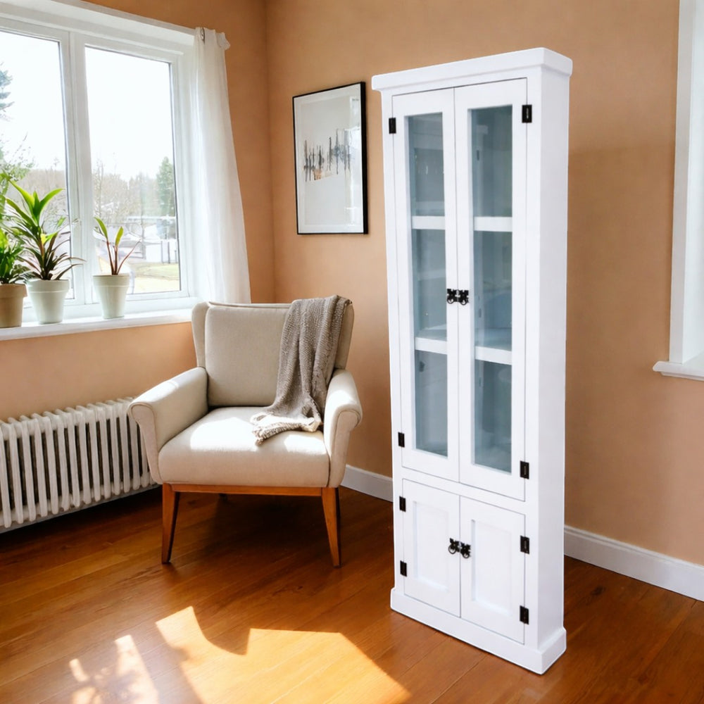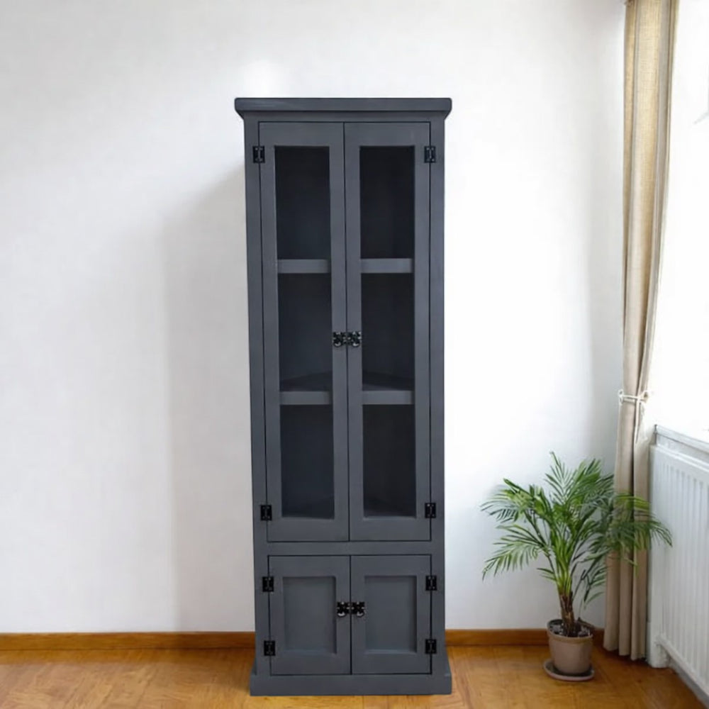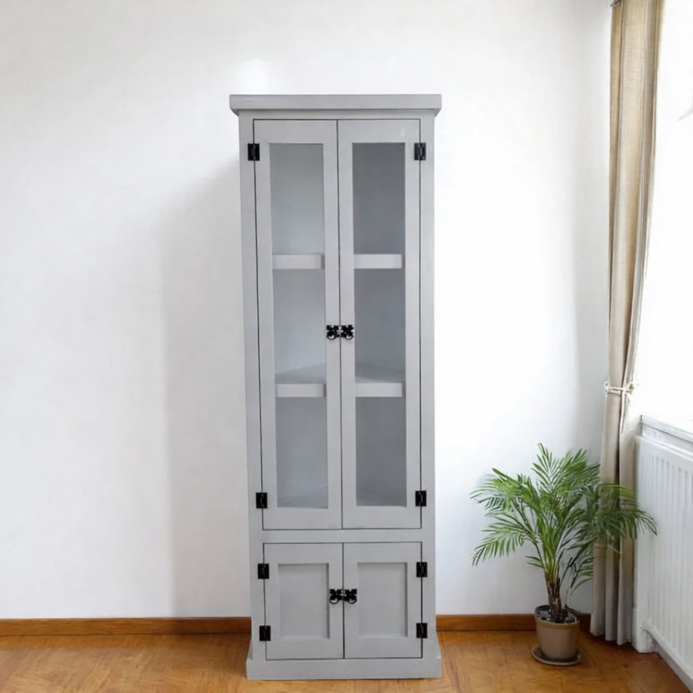 Fabricado artesanalmente en Chile, este esquinero de madera de pino destaca por su esbelta figura de 180 cm de alto. Para asegurar un acabado de alta gama, aplicamos pintura al agua con sellador en la estructura (ecológica y sedosa), mientras que las repisas y puntos de contacto reciben un tratamiento de sellador con laca de alta resistencia, protegiendo la madera de la humedad de las copas y el uso diario.