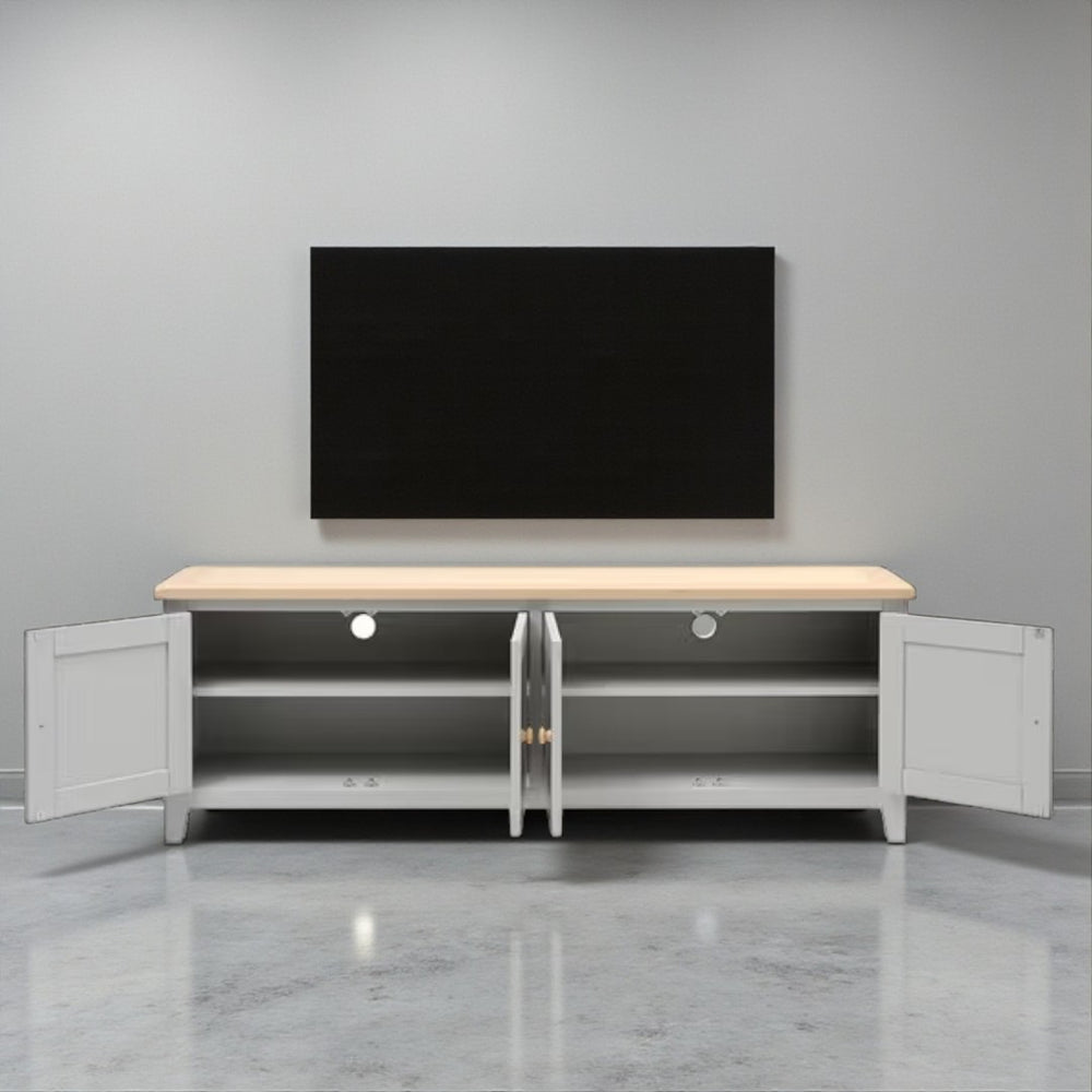 El Mueble de TV Minimalista es la combinación perfecta entre diseño funcional y estética sobria. Ideal para espacios familiares, este mueble te permite mantener en orden consolas, decodificadores y dispositivos multimedia, todo organizado tras sus 4 puertas con estantes interiores. Fabricado con una sólida estructura de madera de pino y terciado mueblista, aporta un toque moderno y elegante al living o sala de estar.