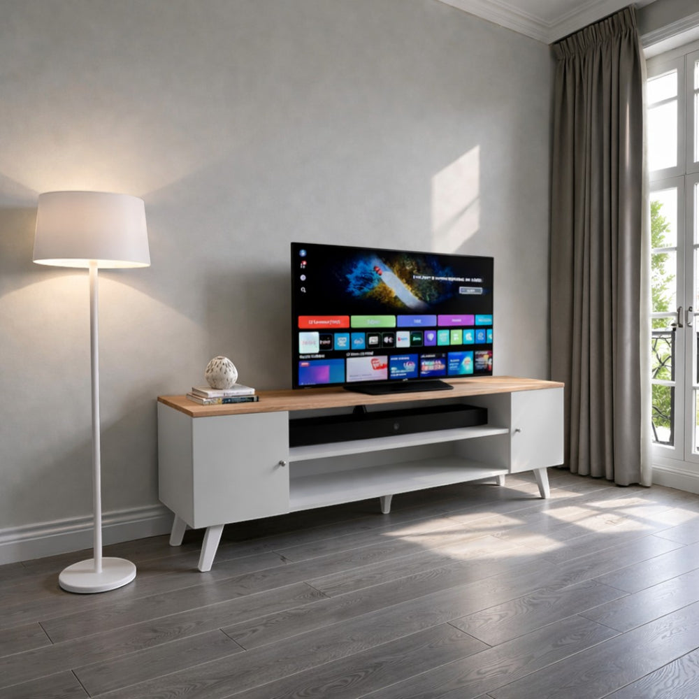 Fabricado artesanalmente en Chile, este aparador de gran capacidad destaca por su versatilidad y acabados de alta gama. Aplicamos un proceso de lacado blanco satinado de alta resistencia en su estructura, contrastado con una superficie de madera maciza tratada para resaltar su veta original, logrando una estética atemporal que encaja magistralmente en decoraciones rústicas, nórdicas o industriales.