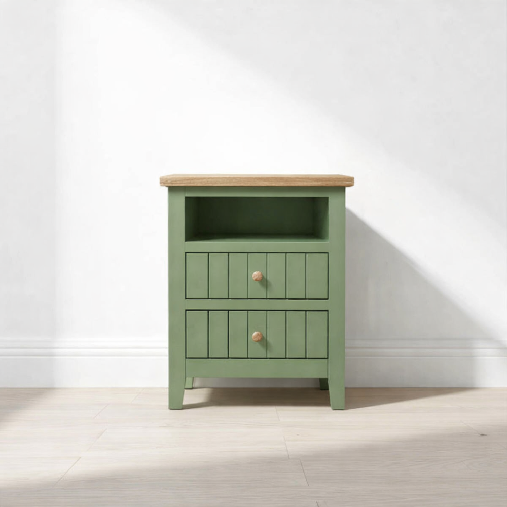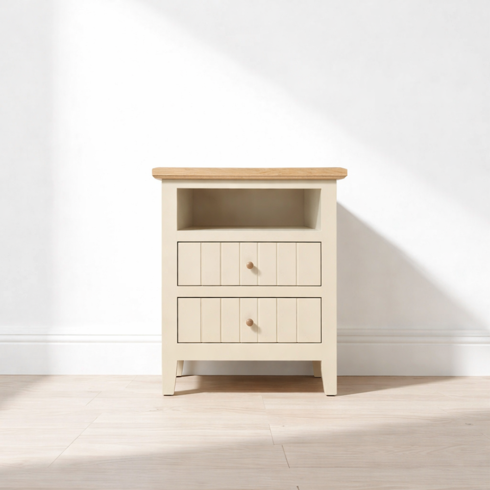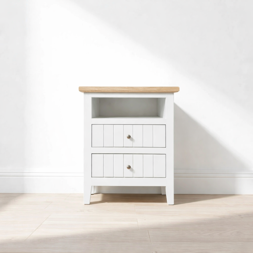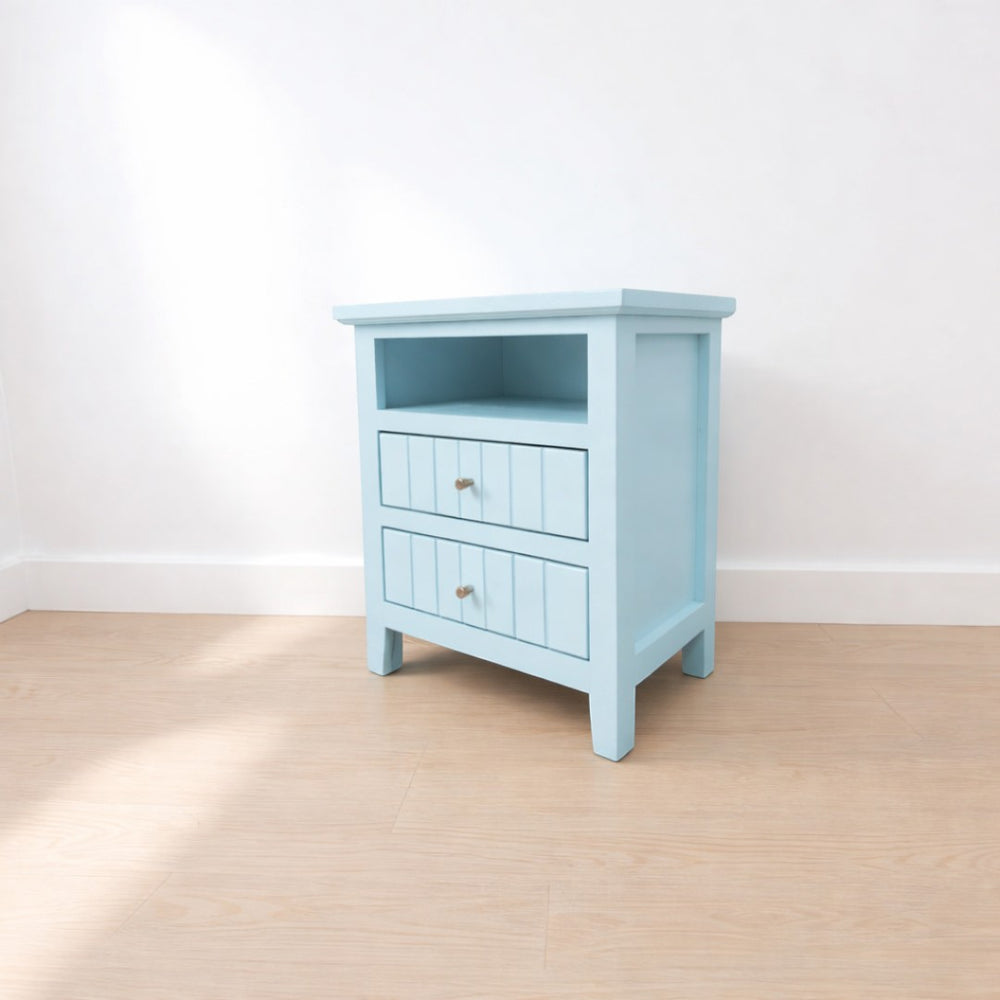 Fabricado artesanalmente en Chile, este velador de madera de pino destaca por su robustez y terminaciones de alta calidad. Siguiendo nuestro compromiso con la excelencia, la estructura recibe un acabado de pintura al agua con sellador (ecológica y sedosa), mientras que la superficie superior y frentes son protegidos con sellador y laca de alta resistencia, garantizando durabilidad ante el uso diario.