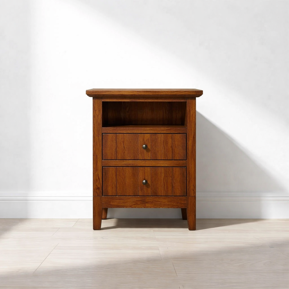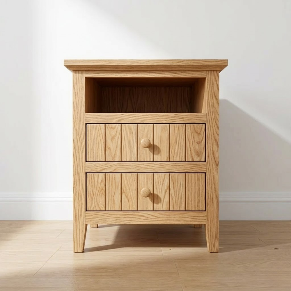 El aliado perfecto para un descanso acogedor y con carácter. El Velador Nordik ha sido proyectado para quienes valoran la nobleza de la madera natural y buscan una pieza funcional que aporte luz y orden a su dormitorio, fusionando el estilo rústico con líneas contemporáneas.