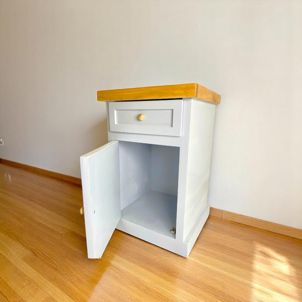 El set de veladores Lucía está diseñado para quienes buscan orden y diseño en espacios reducidos. Su estructura de madera de pino y terciado crea un contraste moderno y cálido que se adapta a cualquier decoración. Con 1 cajón y 1 puerta, cada velador brinda almacenamiento práctico para tus objetos personales, siendo la solución perfecta para dormitorios pequeños, departamentos y espacios minimalistas.