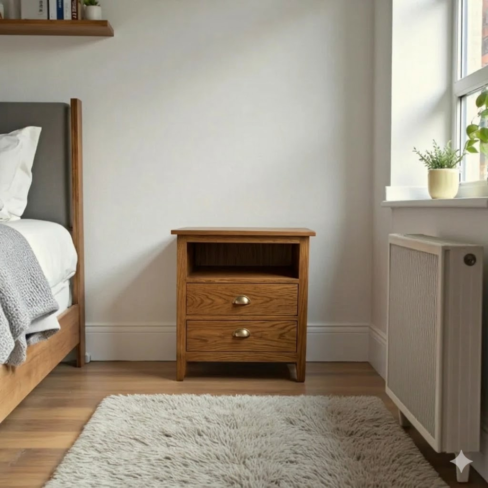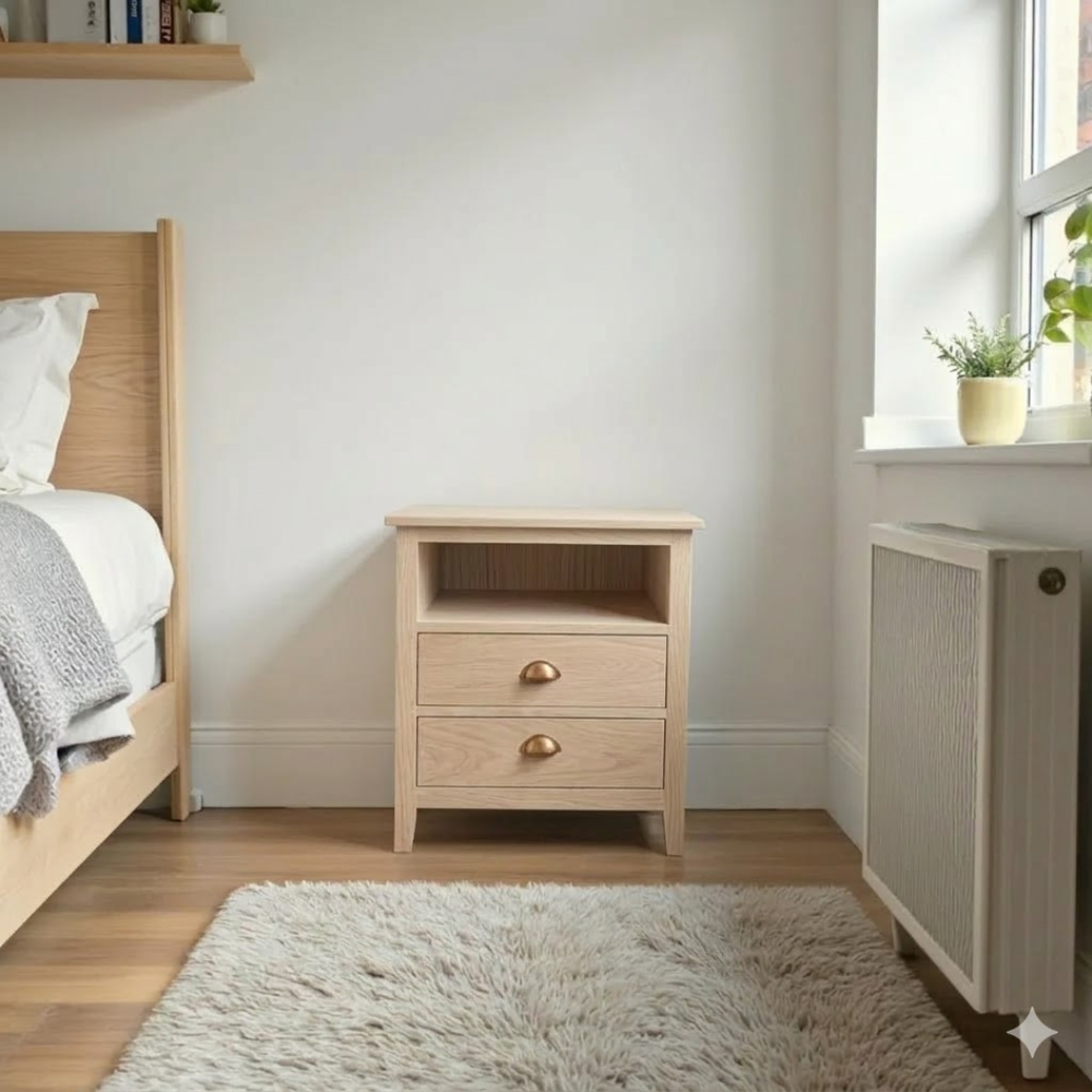 Diseño que ilumina tus espacios: "El Velador Nordik ocupa el lugar perfecto entre lo práctico y lo estético, ofreciendo el máximo impacto visual y de orden." Recibe en tu hogar una pieza exclusiva de Arca Muebles y disfruta de la calidez de la madera real.