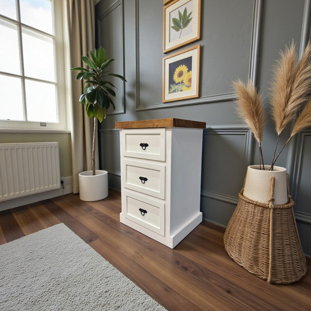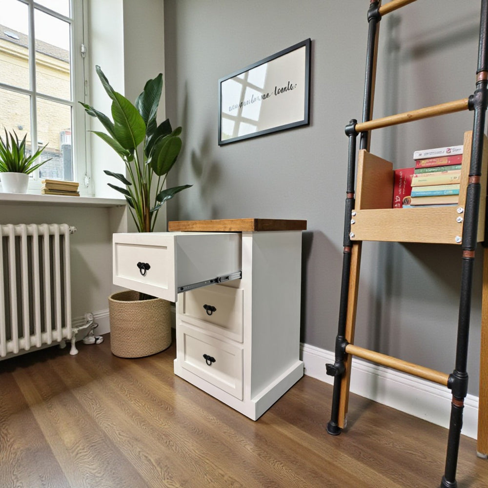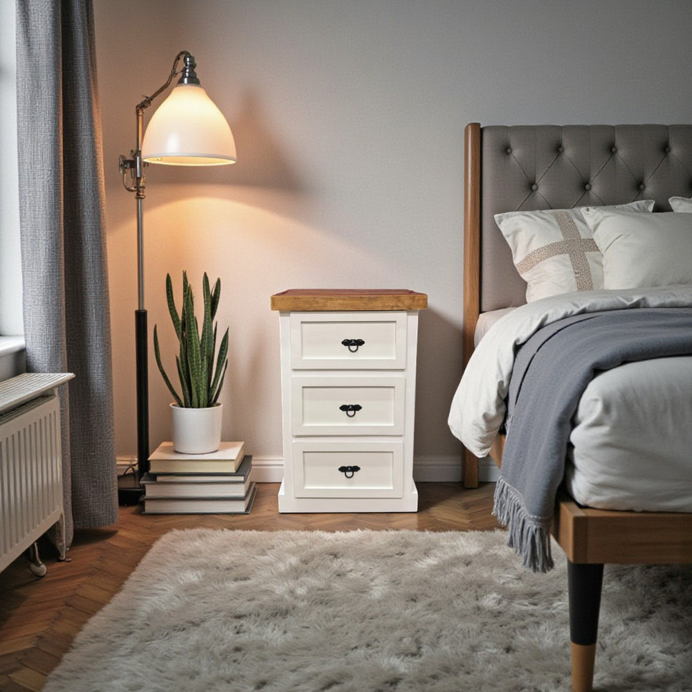 ¿Necesitas mantener tus objetos personales organizados sin perder estilo? El Velador de Tres Cajones Malmo es la solución ideal. Diseñado para dormitorios, salas o estudios, este mueble ofrece almacenamiento práctico y un diseño elegante. Fabricado con una sólida estructura en madera de pino, es perfecto para complementar cualquier ambiente, aportando calidez y funcionalidad.