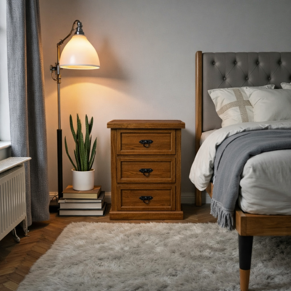El complemento perfecto para un descanso organizado y con estilo. El Velador Malmo ha sido proyectado para quienes necesitan máxima capacidad de guardado junto a su cama, ofreciendo una estructura robusta y una estética que irradia la nobleza de la madera natural.