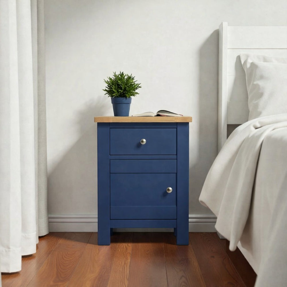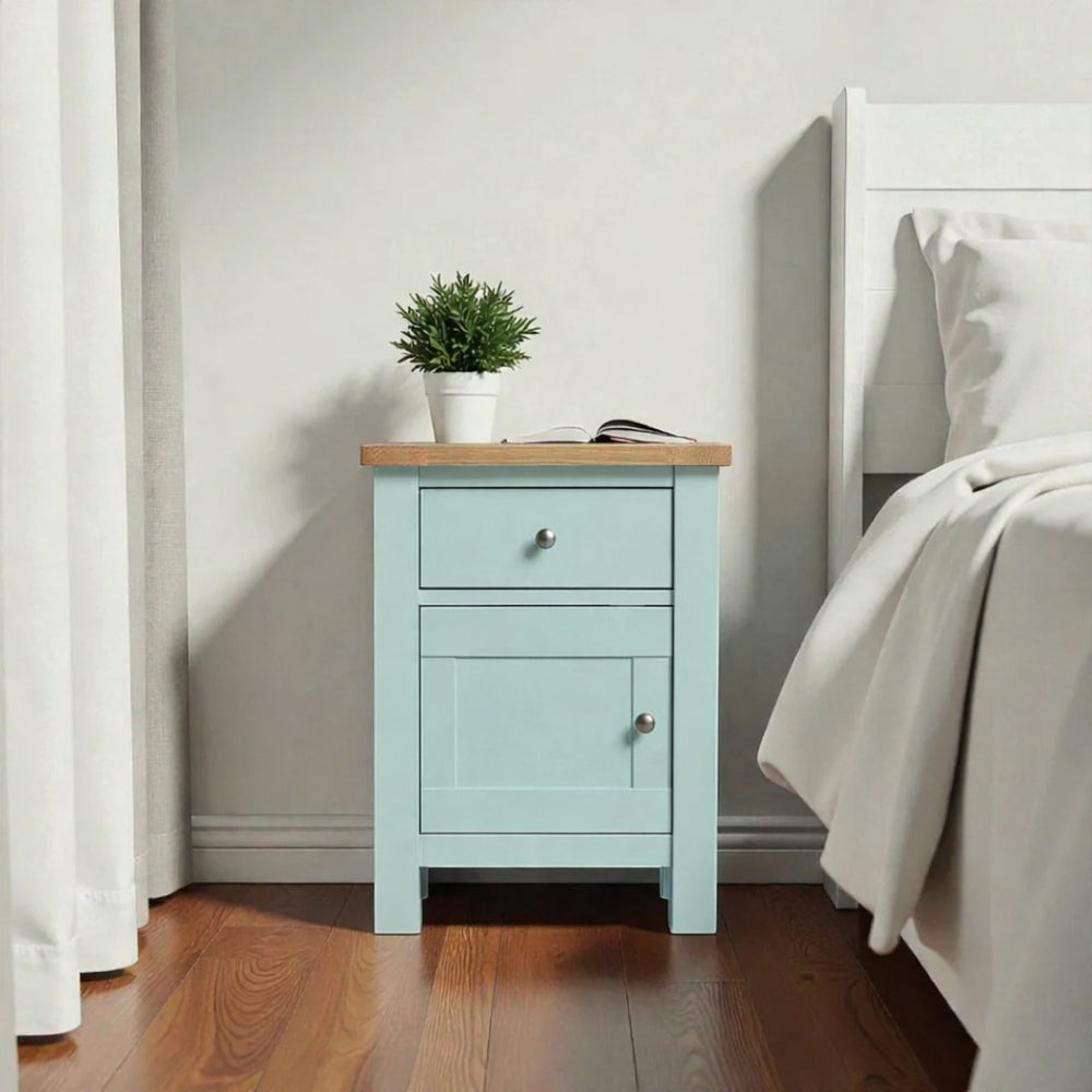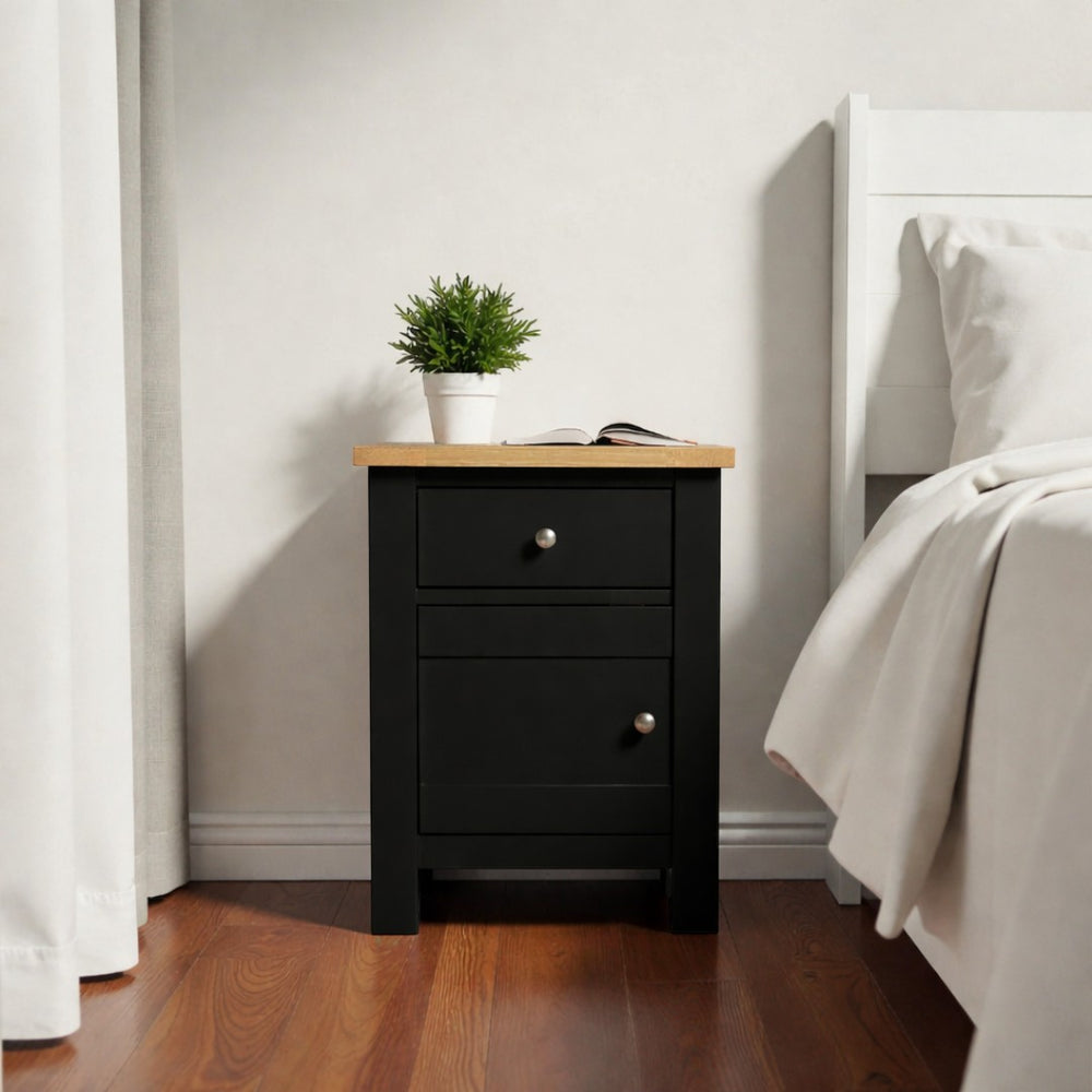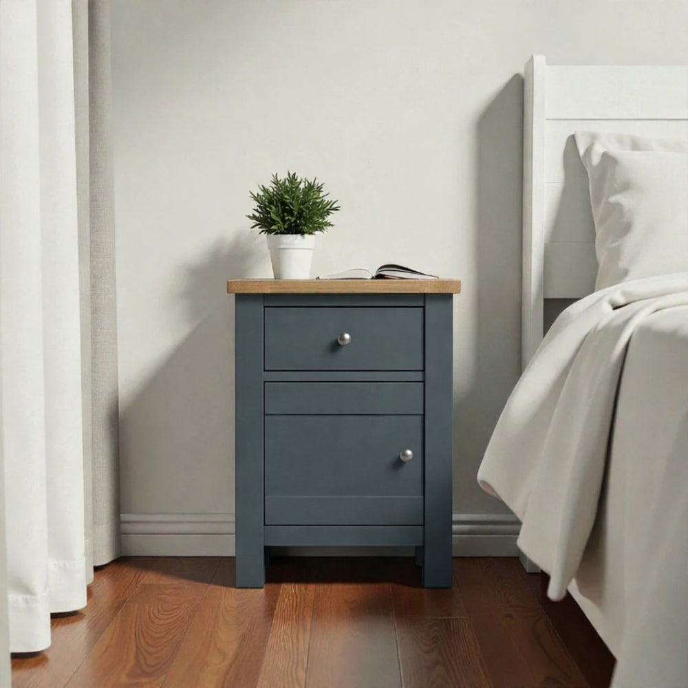 Fabricado artesanalmente en Chile, este velador de madera de pino destaca por su construcción sólida y terminaciones de alta gama. Para garantizar un mueble de estándar superior, aplicamos pintura al agua con sellador en la estructura (ecológica y sedosa al tacto), mientras que la superficie superior es protegida con sellador y laca de alta resistencia, asegurando que el acabado estilo roble (o el de tu elección) luzca impecable por años.