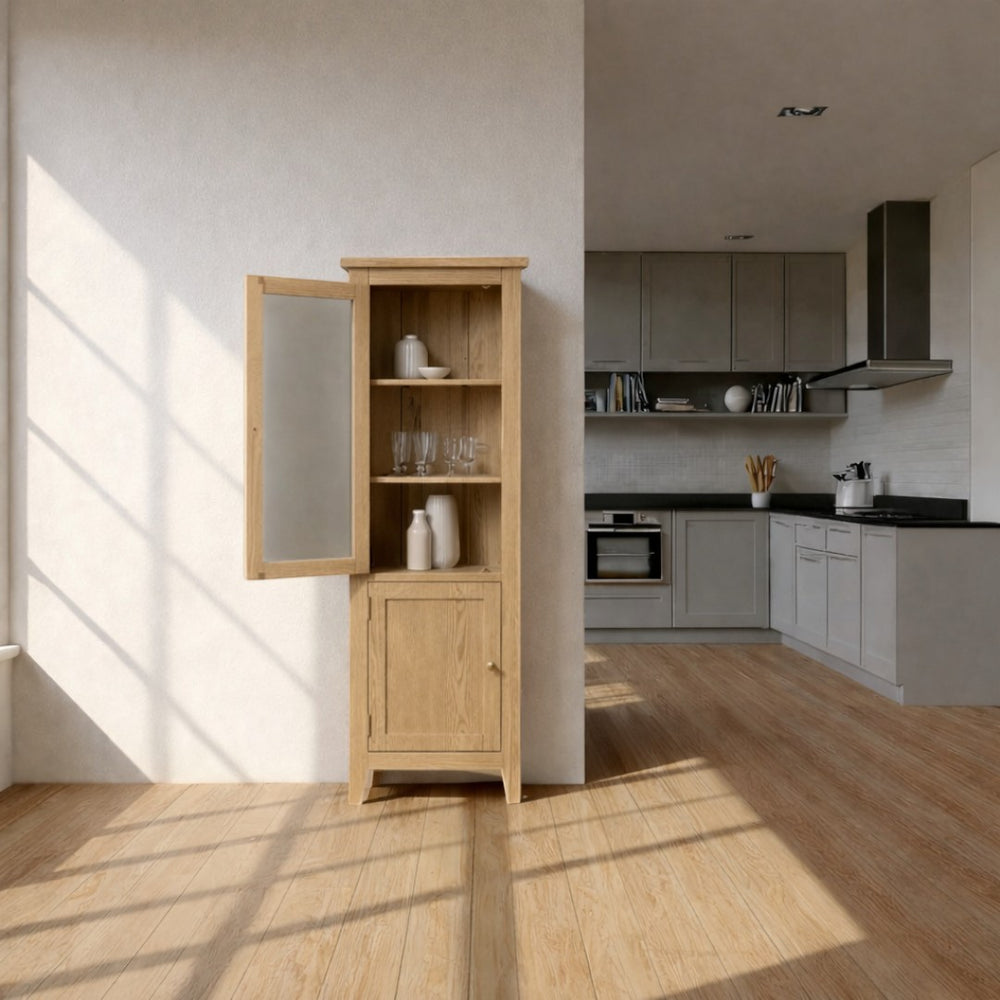 Dale vida a tus esquinas con una pieza que irradia luz y sofisticación. El Vitrinero Esquinero Roma ha sido diseñado para transformar esos ángulos olvidados en una vitrina de exhibición premium, ideal para lucir tu vajilla fina, colecciones de libros o recuerdos especiales.