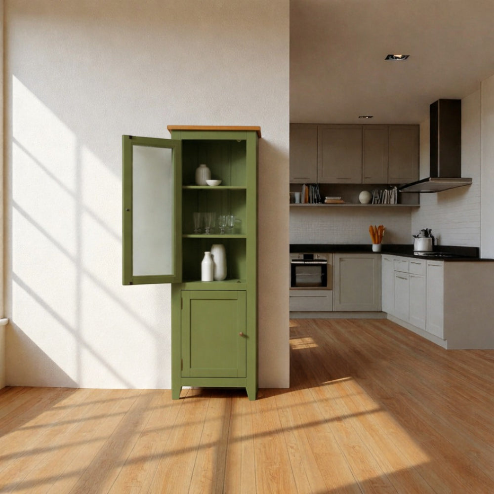 Fabricado artesanalmente en Chile, este vitrinero de madera de pino destaca por su robusta estructura de 180 cm combinada con paneles de cristal que aportan ligereza visual. Siguiendo nuestros estándares de alta gama, la madera recibe un acabado de pintura al agua con sellador (ecológica y sedosa), mientras que las superficies de apoyo cuentan con una protección de sellador y laca de alta resistencia para garantizar un brillo duradero y fácil mantenimiento.